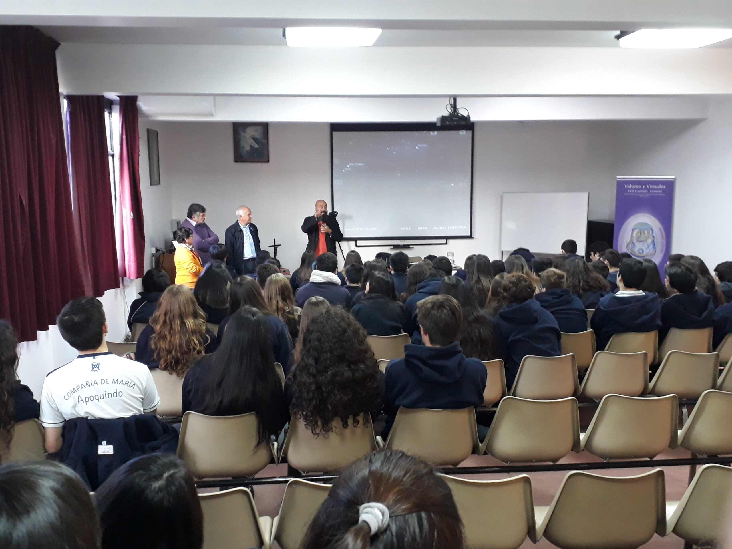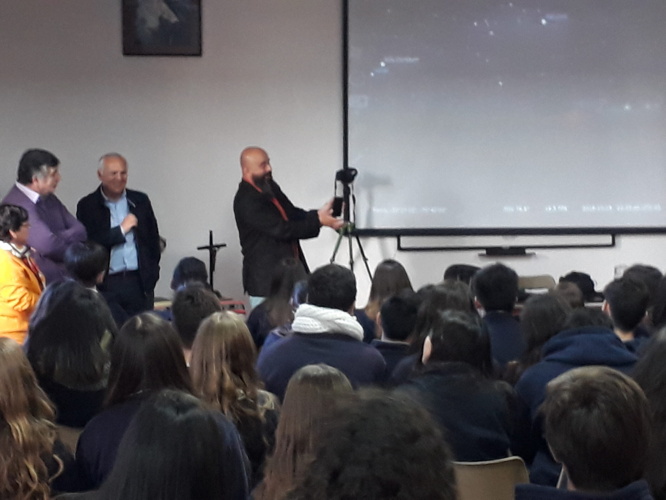 Con el propósito de promover el interés por el estudio de la astronomía, los profesores del electivo de Evolución, de Tercer año de Enseñanza Media, invitaron al profesor Juan Pablo Guajardo, físico y astrónomo de la USACH, a dictar la charla llamada “La historia de la astronomía y el uso de técnicas de transmisión fotográfica en astrofísica”.