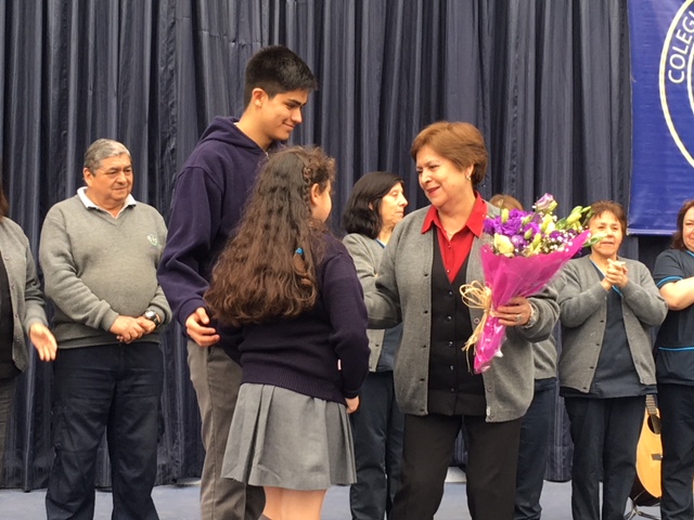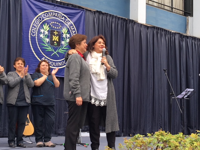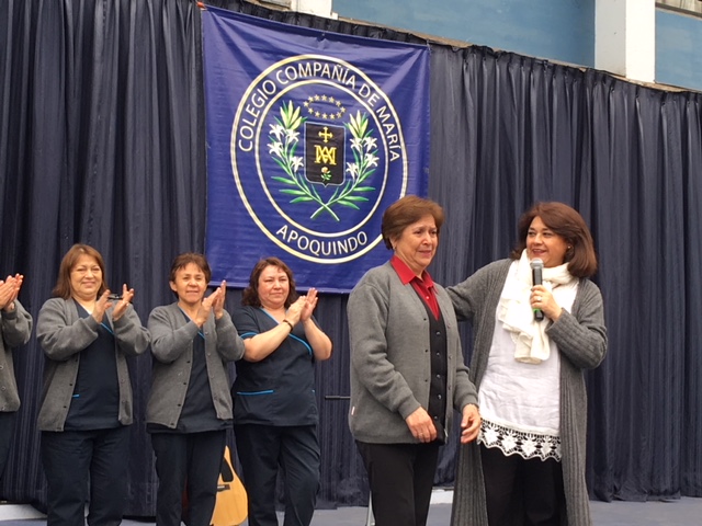 Además, la ocasión nos permitió rendir un agradecimiento muy sincero a nuestra funcionaria más antigua de nuestro colegio : Angélica Macías ( portería) cumplió 50 años de servicio en la Compañía de María.