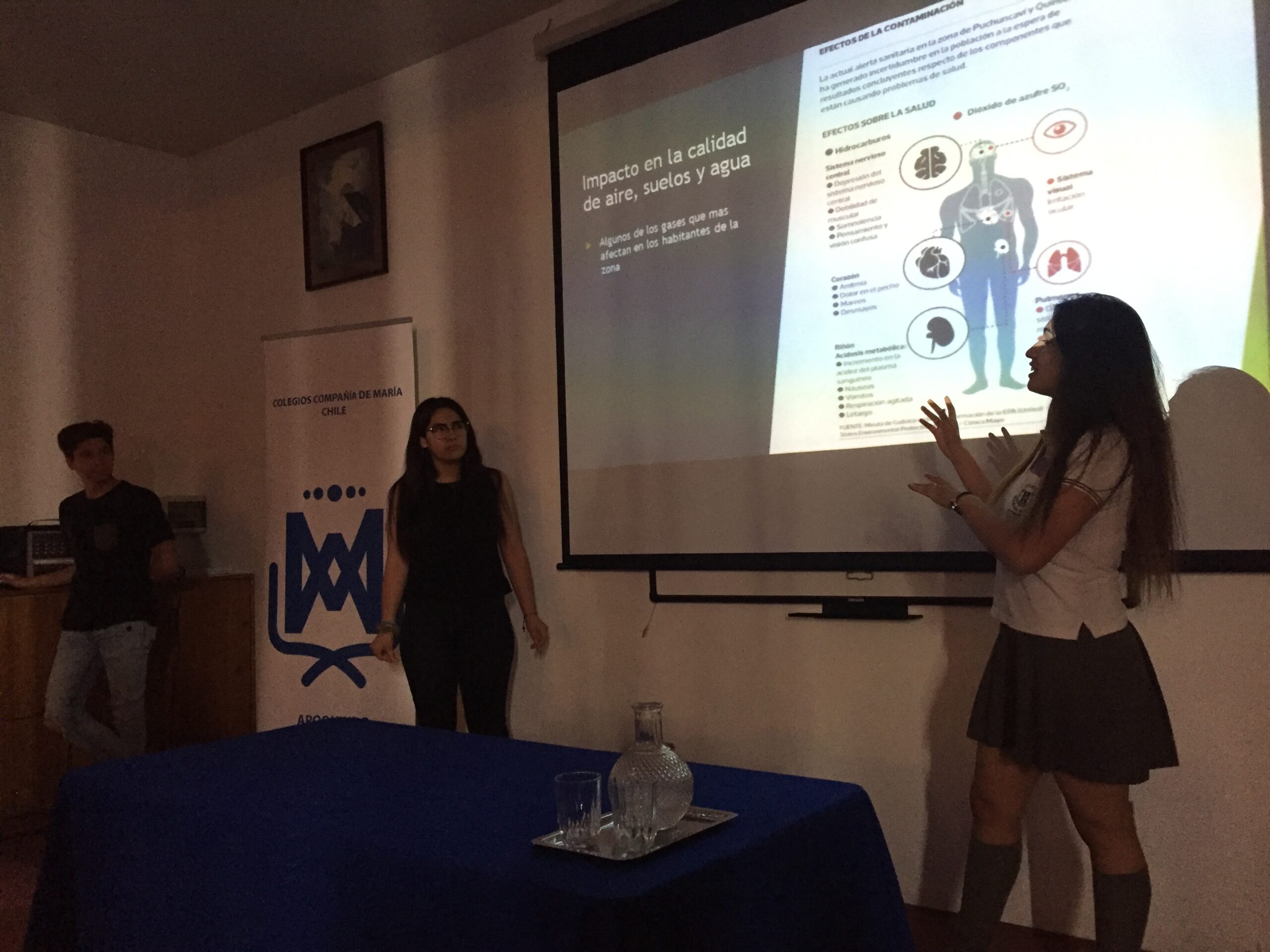 En un intento por integrar las diversas disciplinas o asignaturas que componen el currículum, los electivos del nivel tercero medio; Economía, Química y Biología, miraron desde las tres perspectivas el problema de la zona Quintero – Puchuncaví, todo un desafío que nuestros alumnos y alumnas supieron llevar adelante y que, por otra parte, permitió trabajar en equipo, investigar, exponer resultados e ilustrar a sus compañeros en torno a un problema de interés nacional y mundial.