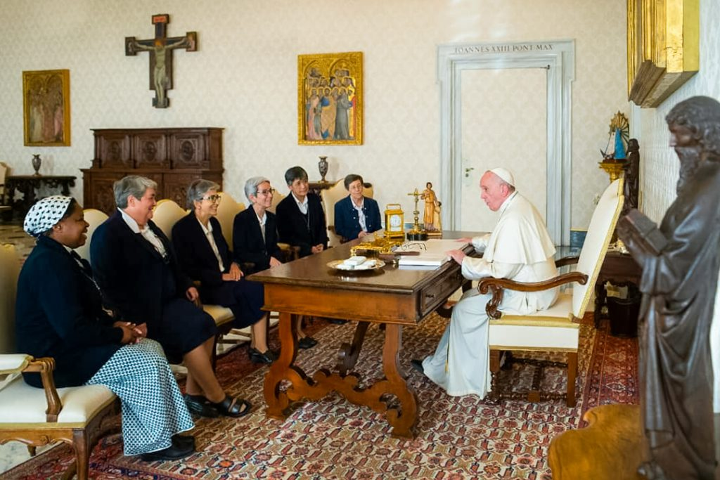 El Equipo General de la Compañía de María fue recibida en una Audiencia privada con el Papa Francisco el reciente 6 de enero, en la Santa Sede del Vaticano. En esta ocasión, el Papa pudo intercambiar ideas con las hermanas que lideran el Proyecto Apostólico de Santa Juanna de Lestonnac. En un diálogo muy cordial y fraterno se abordaron diferentes temas, entre ellos : La educación a la Juventud. Pidió una educación más basada en el dialogo que en la rigidez; Felicitó a la congregación por el aporte realizado en África en el área de Educación, entre otros variados temas.