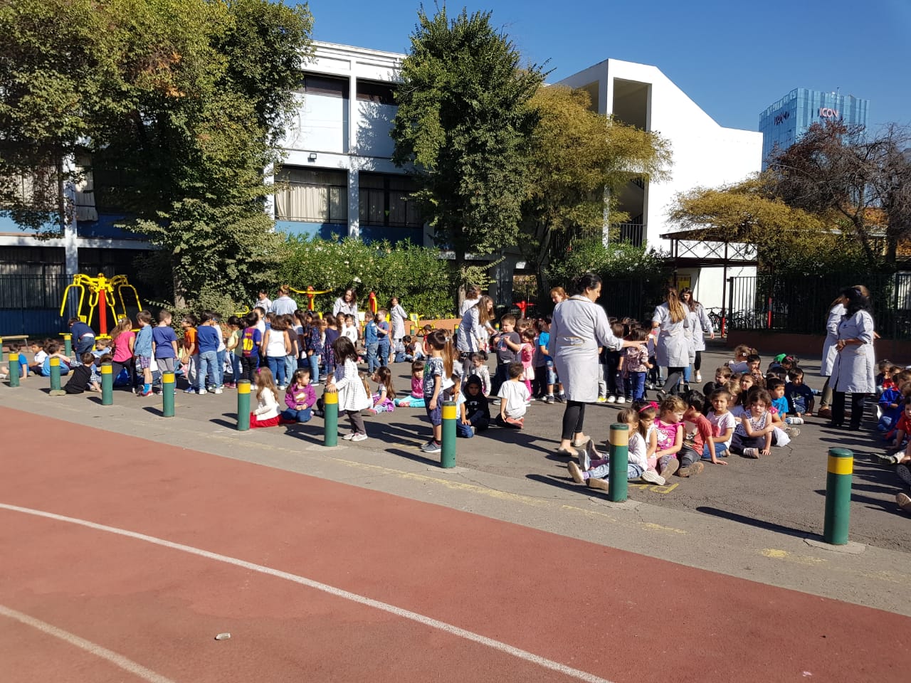 Esta mañana se desarrolló una Simulacro de Sismo grado 8 (Richter) y luego una evacuación general a la zona de seguridad. Esta actividad fue muy bien evaluada por expertos de la Municipalidad de Las Condes, quienes asistieron a observar esta actividad del PISE (Plan Integral de Seguridad). Para los más pequeñitos del colegio (pre-escolar) fue su primera experiencia. Sin embargo, su comportamiento fue ejemplar.