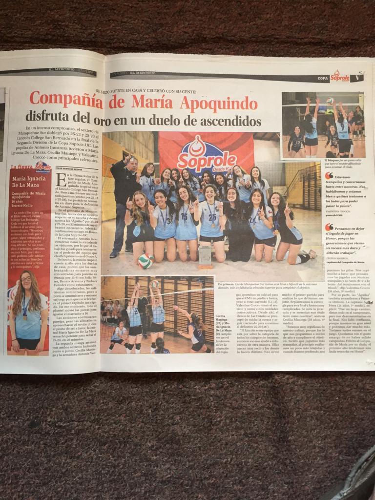 Finalmente , el arduo trabajo, la constancia y la disciplina deportiva tuvo sus frutos: Nuestra selección de Vóleibol femenino resultó Campeona Escolar del Torneo Soprole- Universidad Católica.