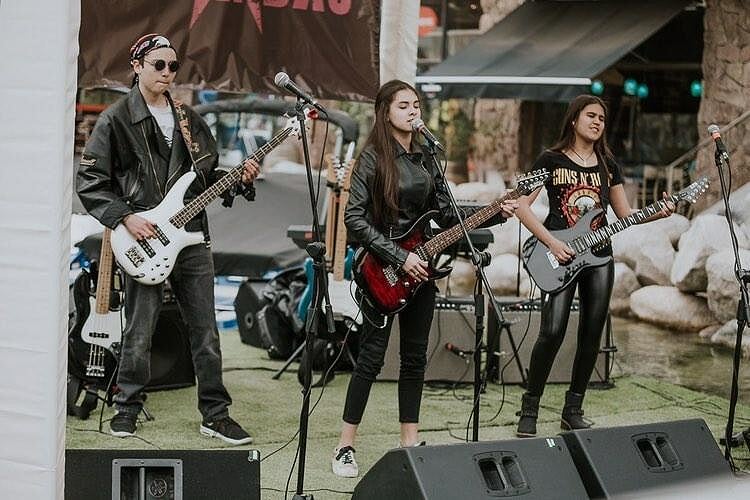 Sofía Ferruzzola, Francisca Aguilera, Valentina Servantis, alumnas de I medio C y Nélson González, del IIIº medio A, comparten los estudios con su hobby artístico y musical. Esta agrupación musical, integradas por alumnos del colegio, participó en la reciente Batalla de Bandas que reunió a las mejores bandas Escolares del país y logró un destacado Segundo lugar , obteniendo el reconocimiento de todos los asistentes a esta importante actividad artística.