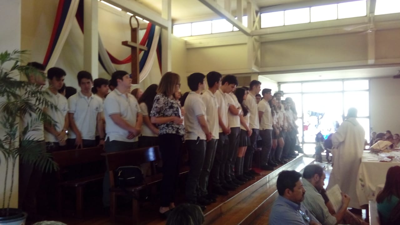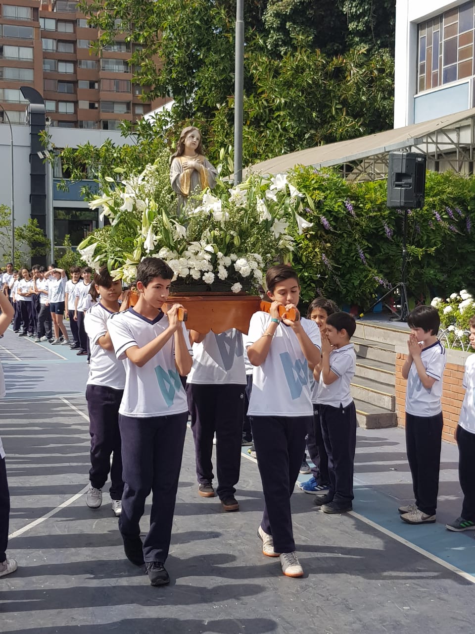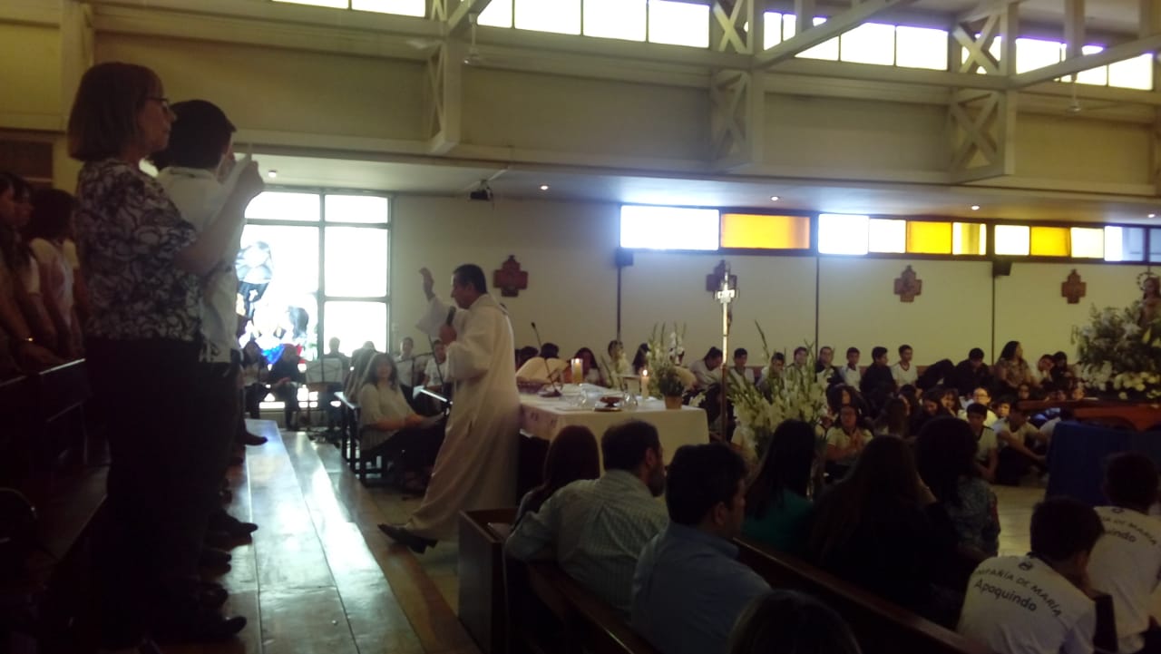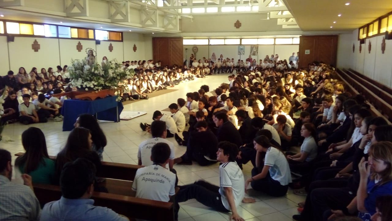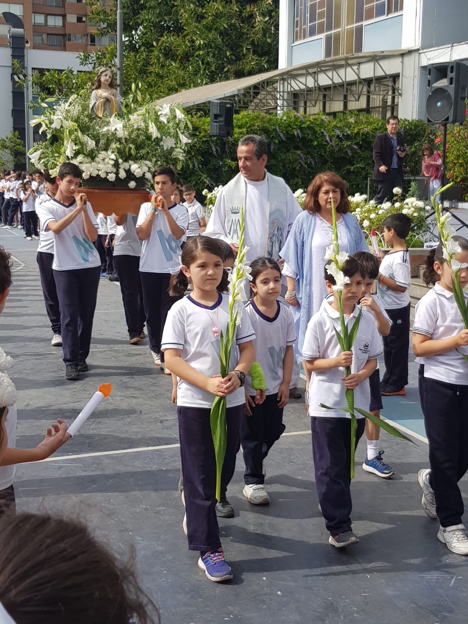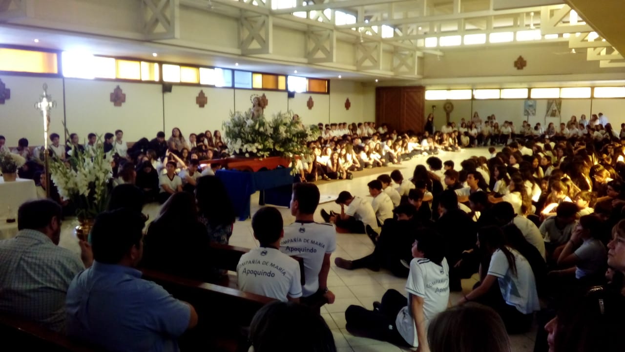 Se abrieron las puertas del colegio y fueron saliendo las niñas en procesión llevando una imagen de la Virgen. A continuación se celebró la misa. Al llegar al ofertorio, todas las niñas hicieron la consagración al Señor.