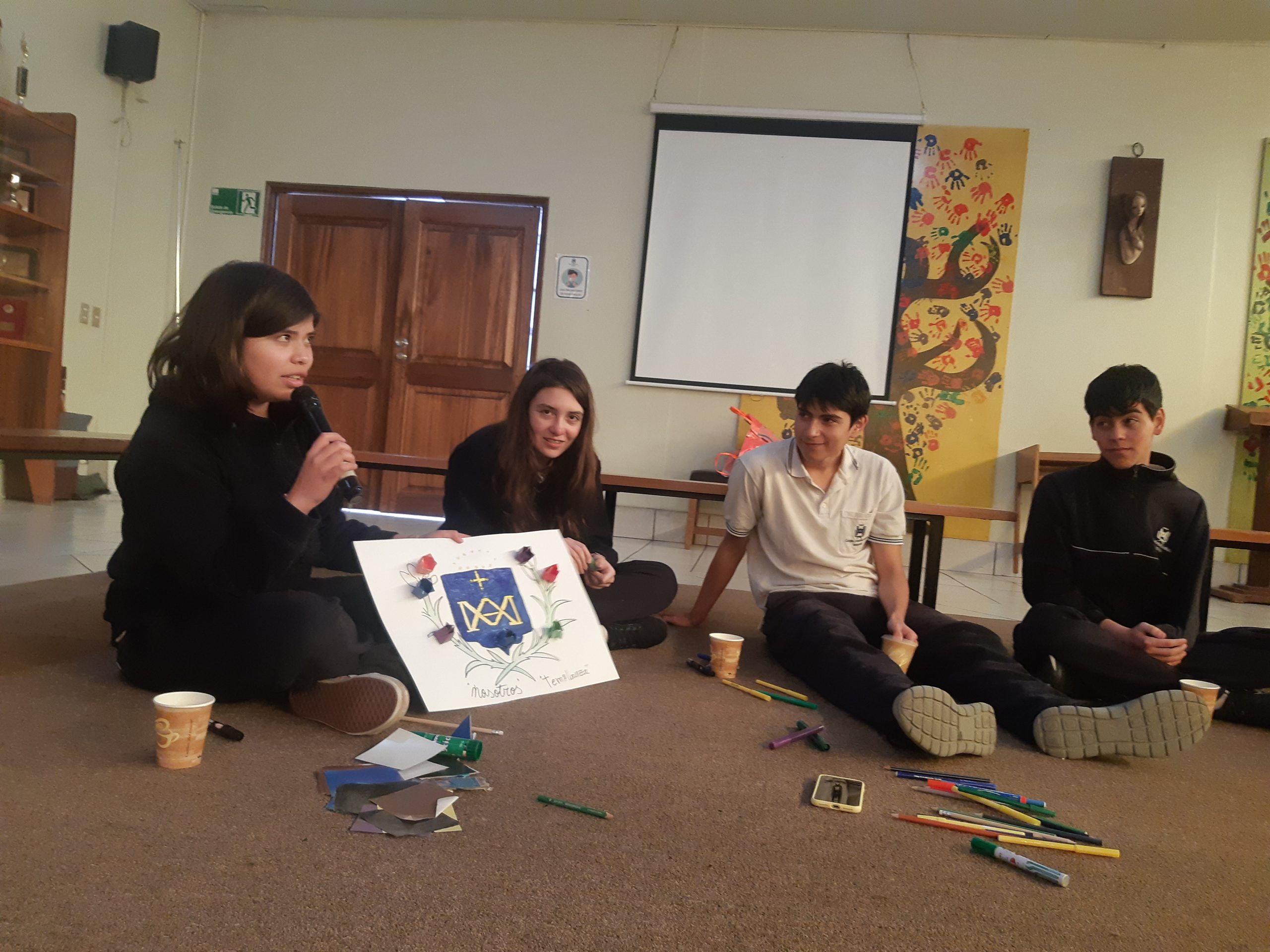 Con el objetivo de fortalecer elementos identitarios Compañía de María en las directivas de curso: significado del escudo, conocer la visión, misión, valores y pilares de nuestra espiritualidad, se realizaron dos talleres con estudiantes que buscaron vincular la acción