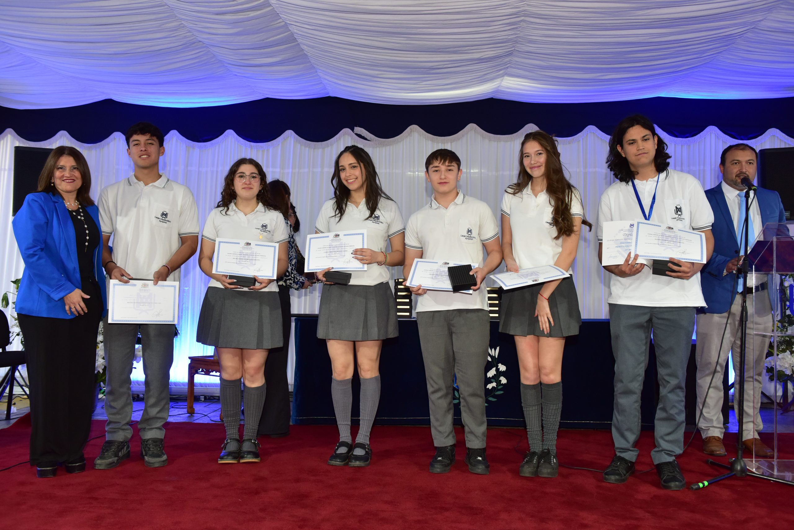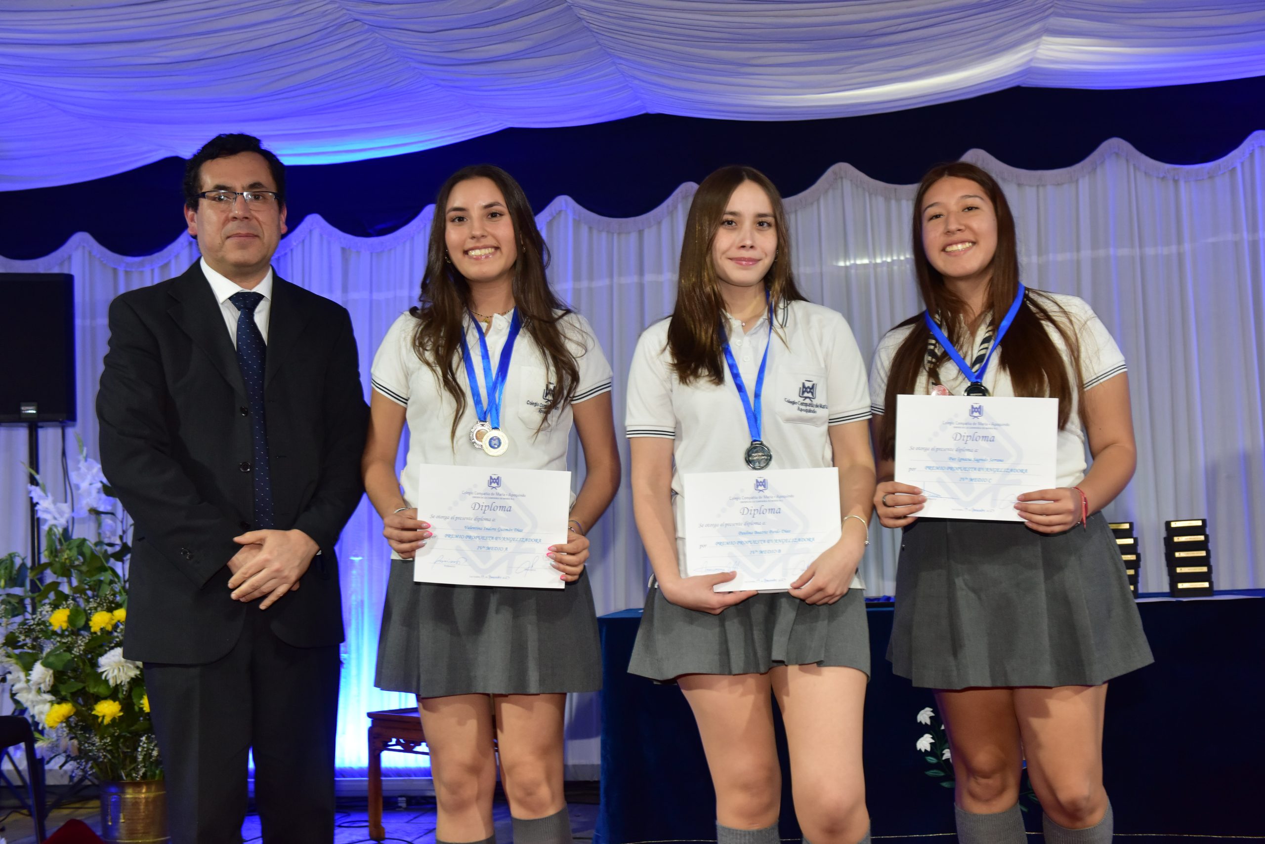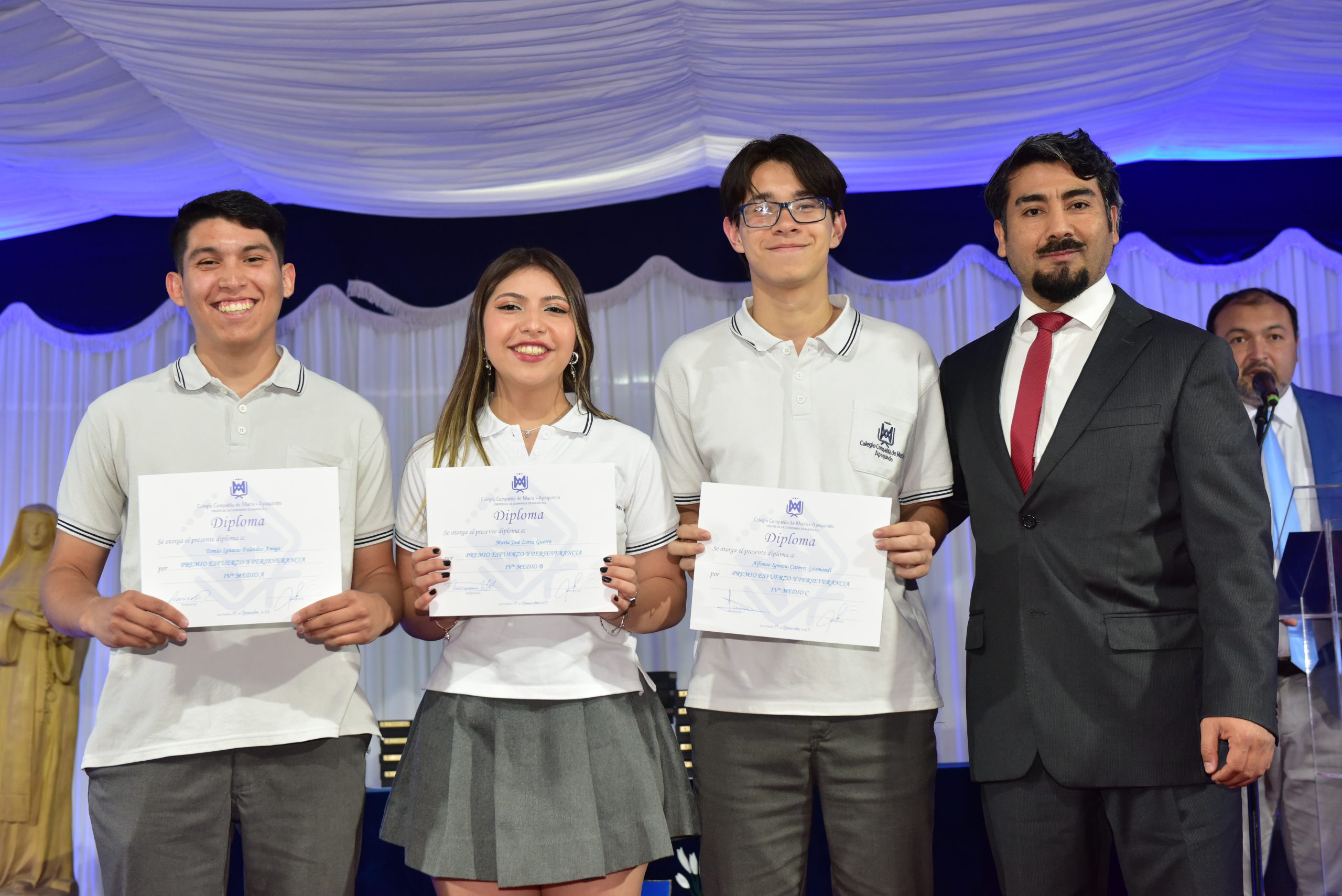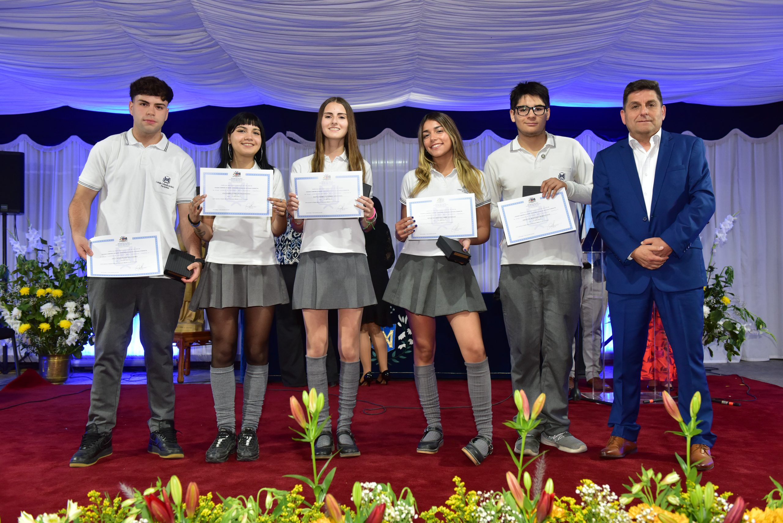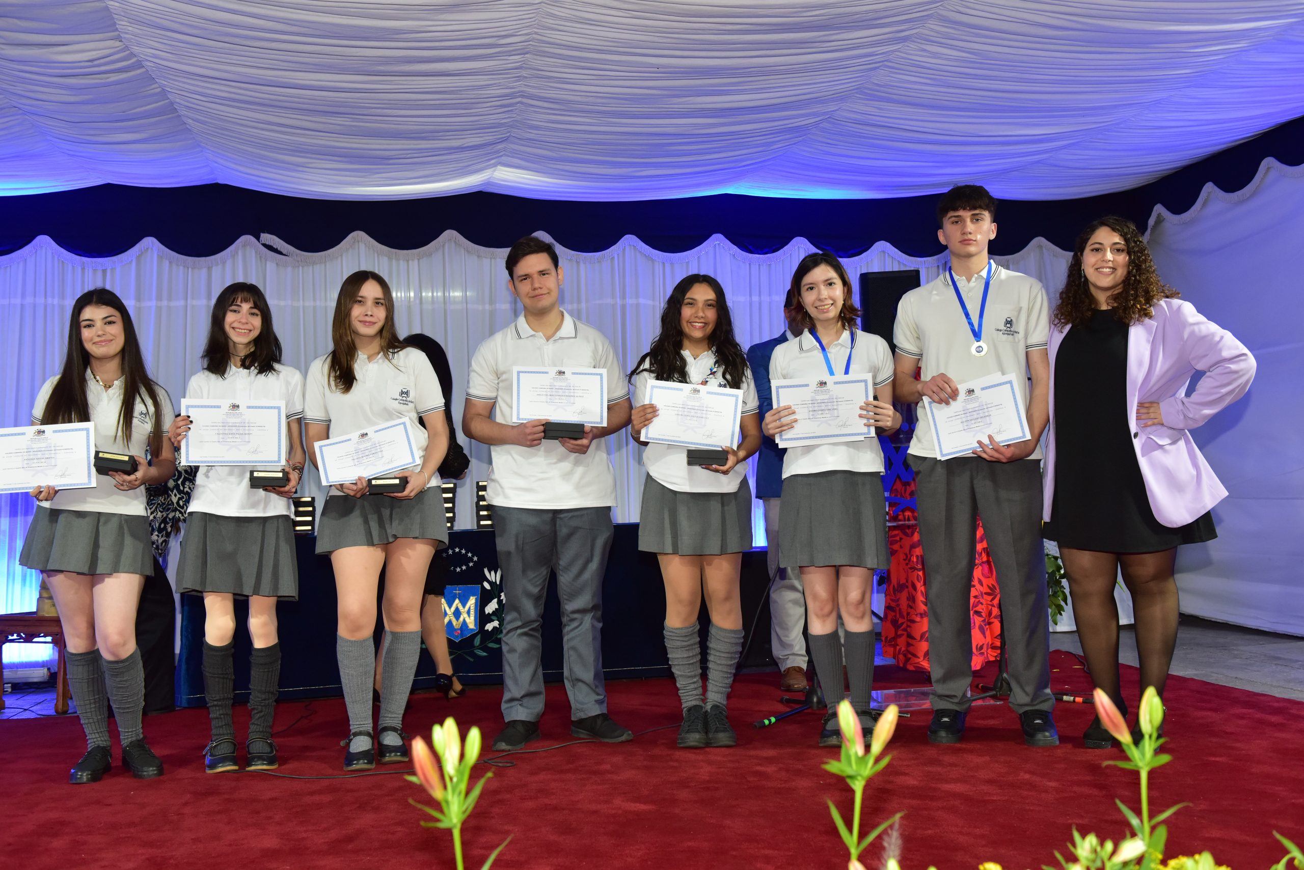 El viernes 17 de noviembre, se realizó la licenciatura de nuestros estudiantes de IV Medios, junto a sus padres, familiares, Equipo Directivo, Educadores, Religiosas, Equipo EDG, Centro de Padres y Centro de Alumnos. El acto se inició con el ingreso de los estudiantes por el arco de flores, recordando el primer día de clases en el colegio y luego fueron saludados por la Directora Sra. María Paulina Tello. Un momento importante fue cuando recibieron de manos de su Profesor Jefe la licencia de IV medio. En el acto se premió a los mejores promedios de IV Medio, al mejor promedio de Enseñanza Media , Premios Propuesta Evangelizadora y se entregó un reconocimiento a las familias más antiguas que ingresaron al colegio por el año 2001, galardón entregado por la Hna. Mariela Leiva odn, integrante del Equipo de la Provincia Cono Sur. El máximo reconocimiento que es el Premio Lestonnac fue entregado por la Directora Sra María Paulina Tello.