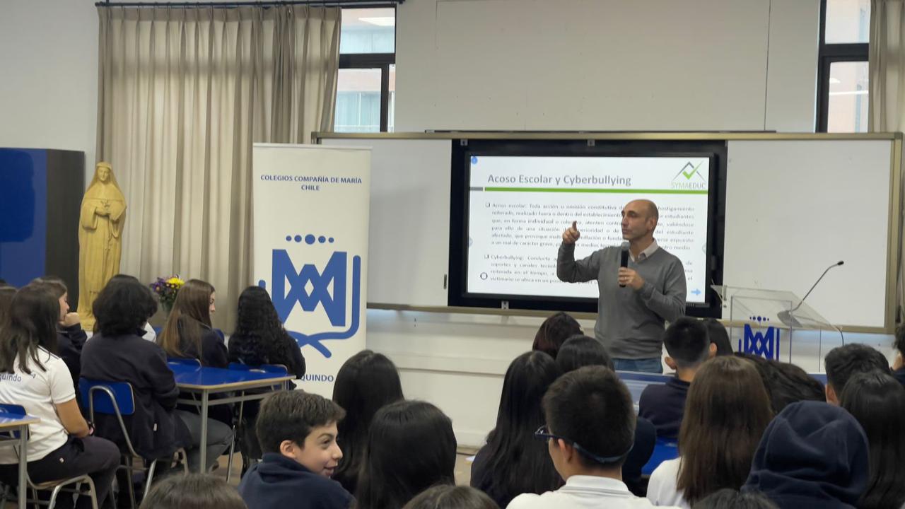 El viernes 5 de abril, nuestros estudiantes de 1° y 2° medios tuvieron la oportunidad de participar en una charla preventiva sobre el ciberacoso escolar. Nos acompañó en esta importante instancia Sebastián Lues, abogado especializado en el tema.