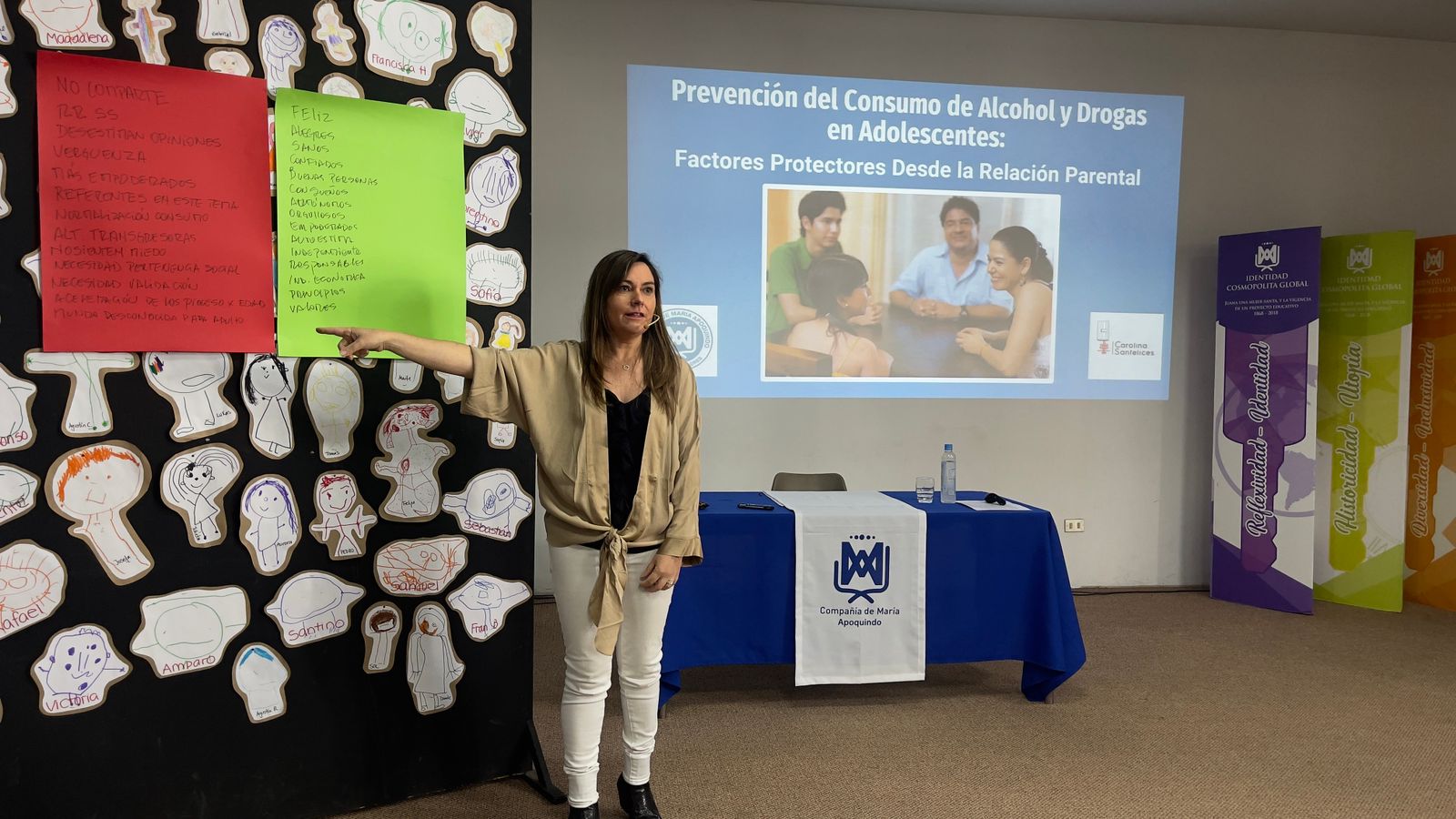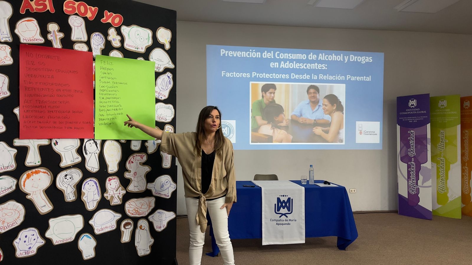 El sábado 6 de abril, nuestro colegio fue testigo de una jornada enriquecedora junto a nuestros padres y apoderados. Con la colaboración del Centro de Padres, se llevó a cabo la charla sobre “Prevención del Consumo de Alcohol y Drogas en Adolescentes”, impartida por la psicóloga Carola Santelices.