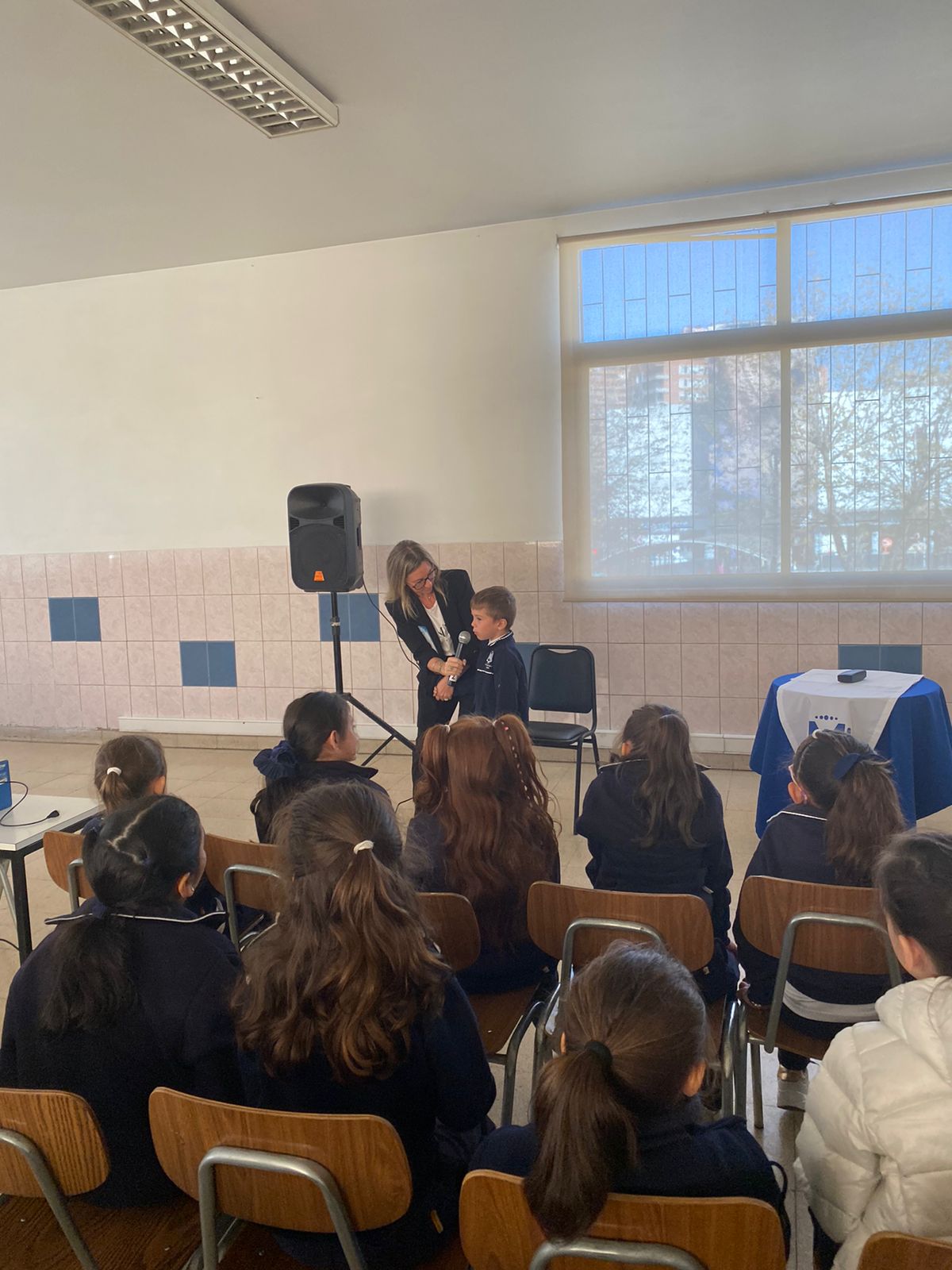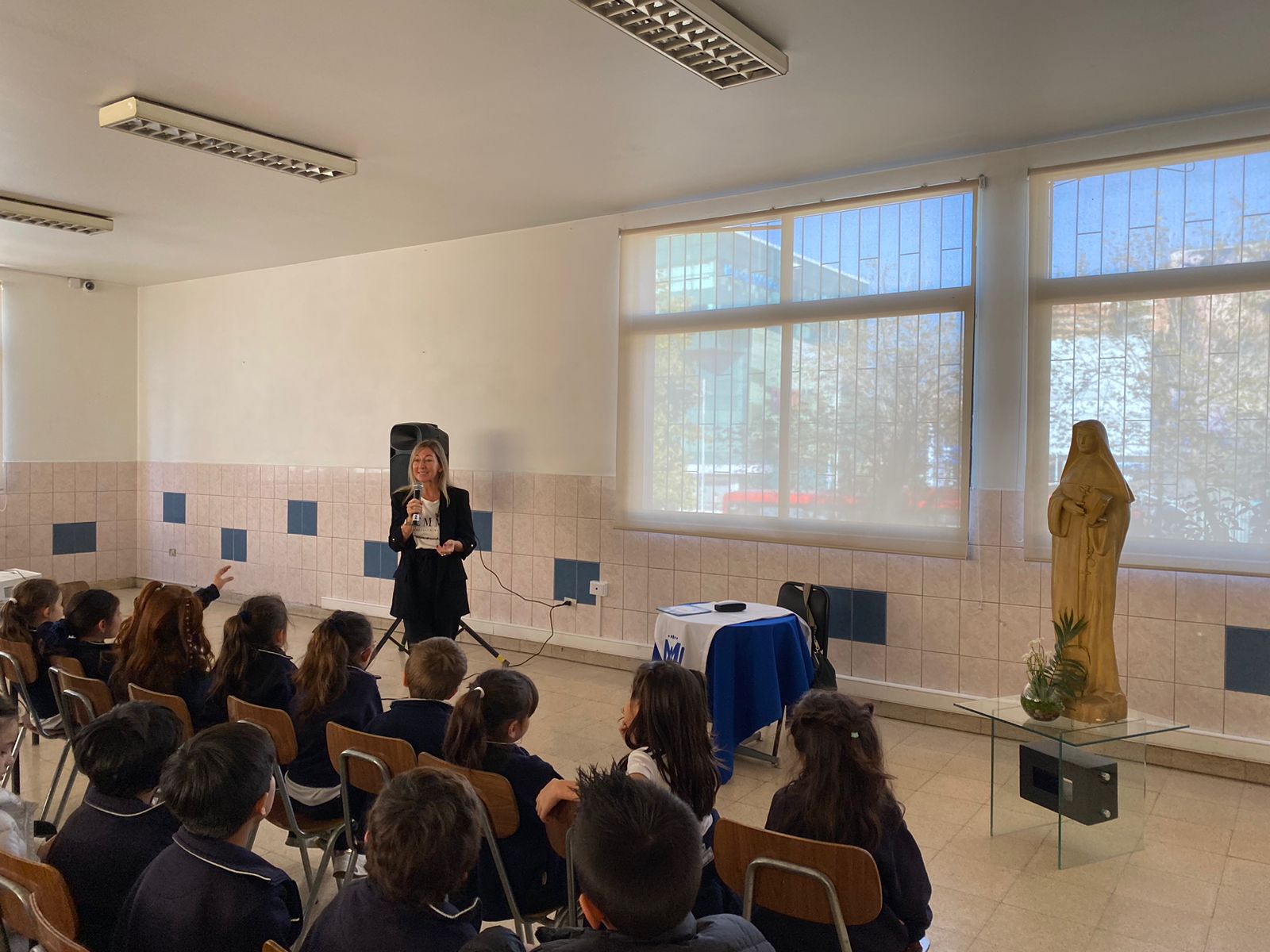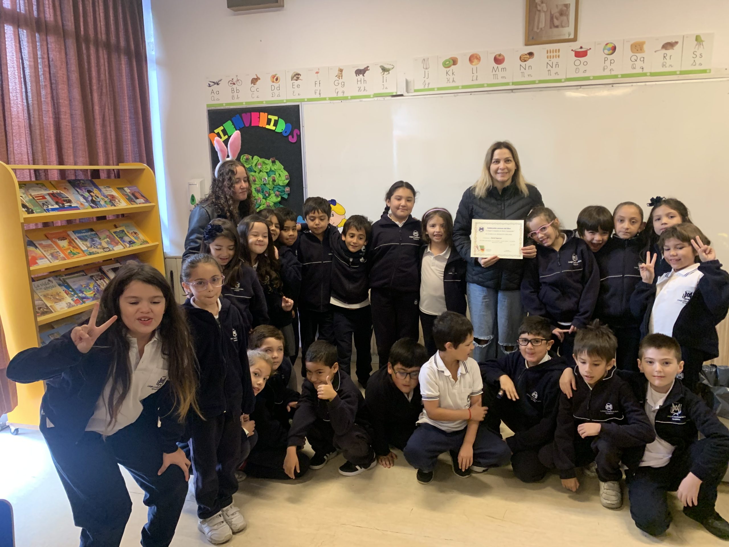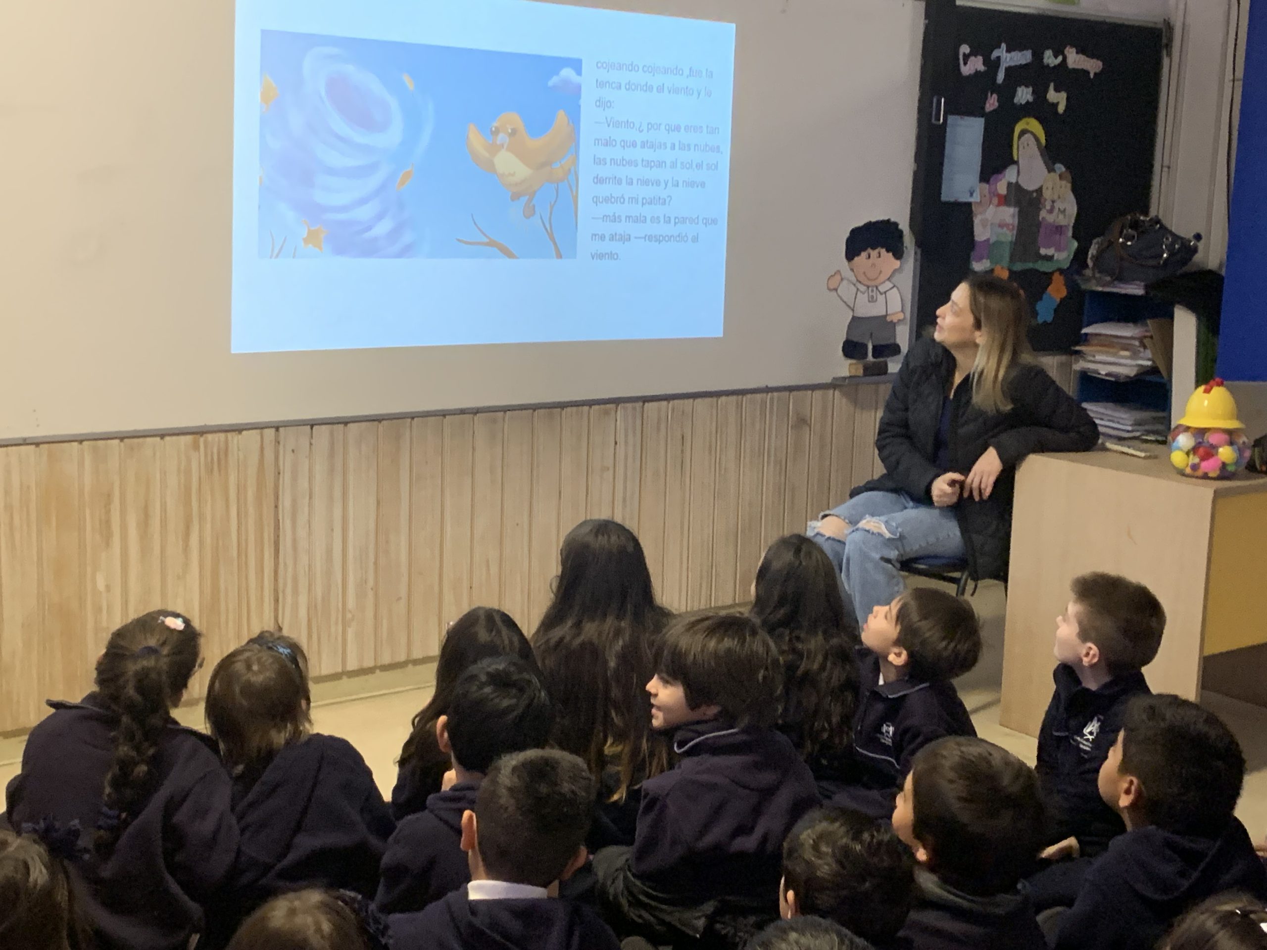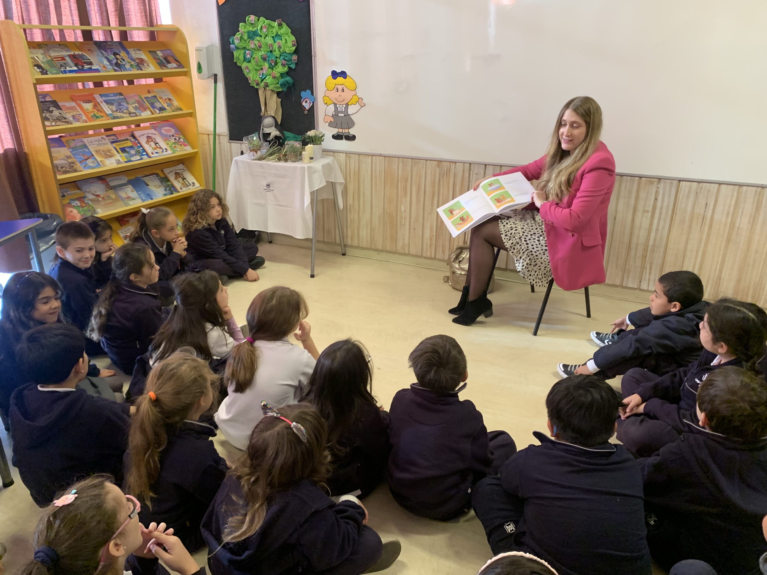 Visita de la escritora Trini Bascuñán: Trini Bascuñán compartió un hermoso cuento con estudiantes de primer básico titulado “El Ángel de la Guarda”. Además, uno de los niños recibió el cuento como premio en un sorteo.