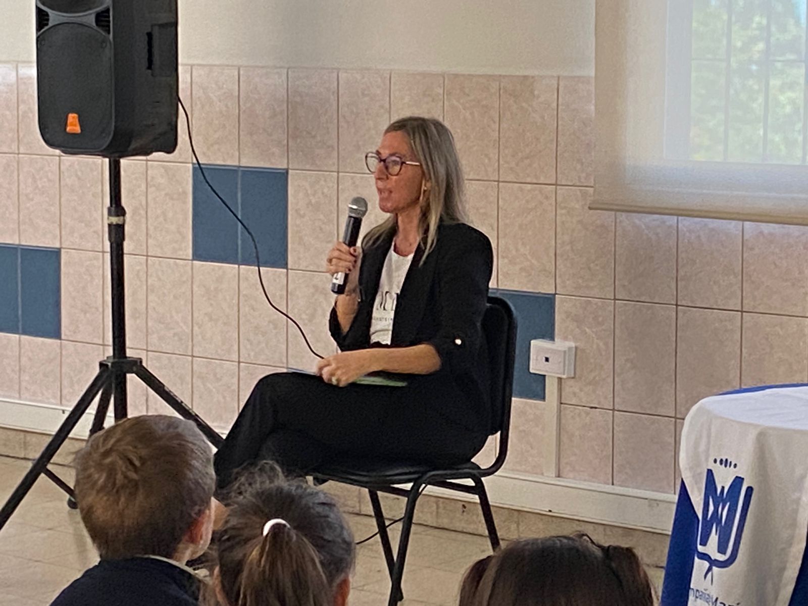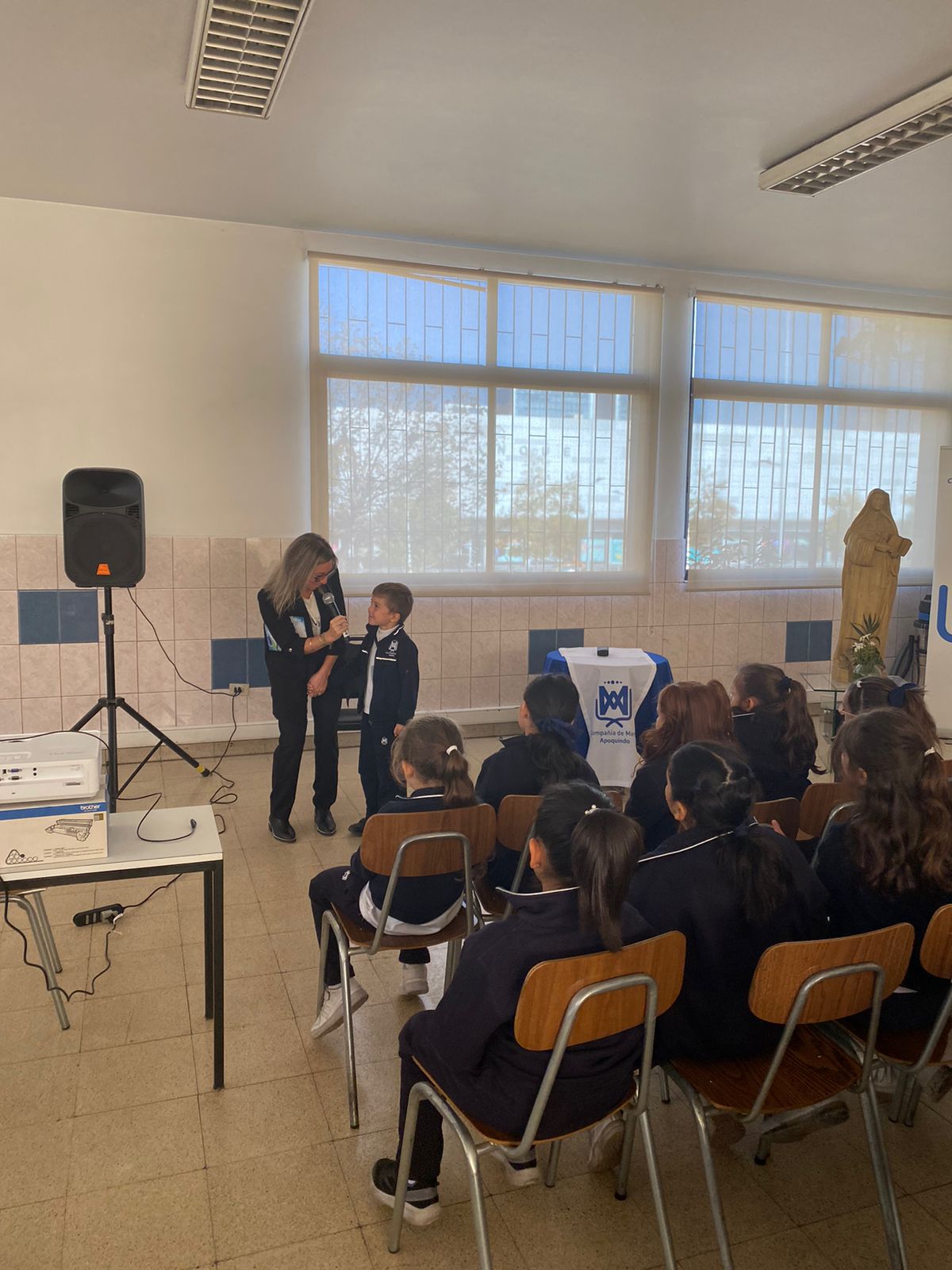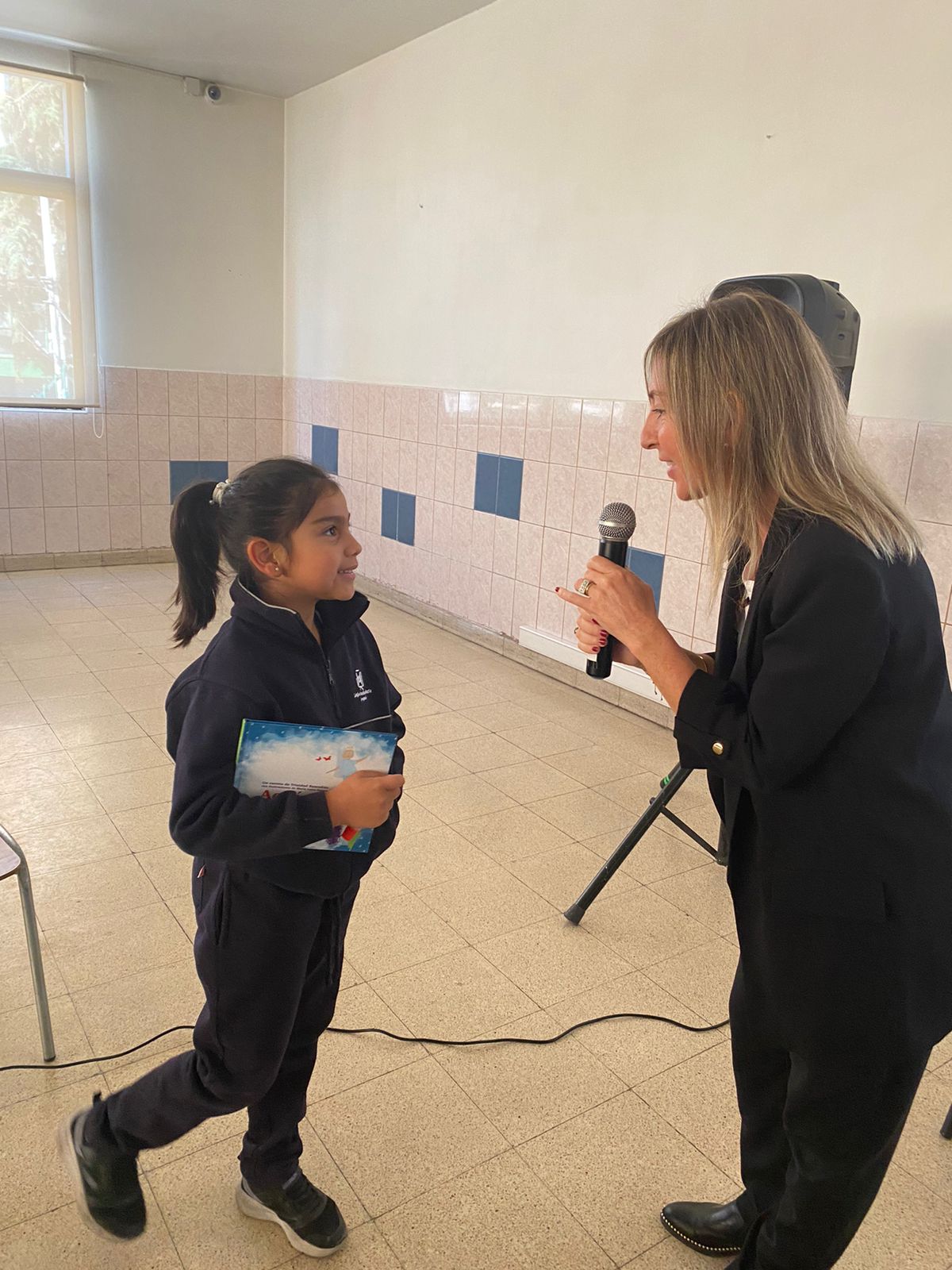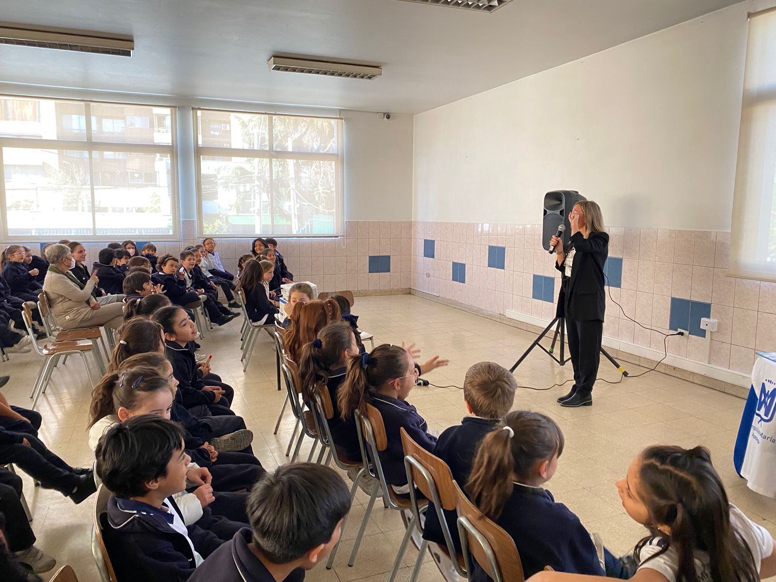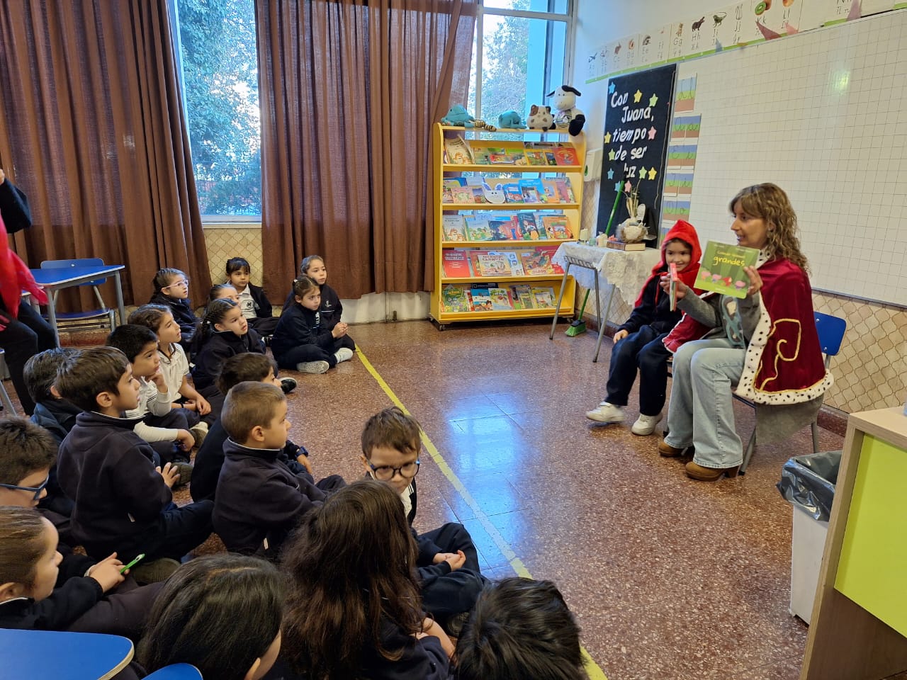 Visita de la escritora Trini Bascuñán: Trini Bascuñán compartió un hermoso cuento con estudiantes de primer básico titulado “El Ángel de la Guarda”. Además, uno de los niños recibió el cuento como premio en un sorteo.