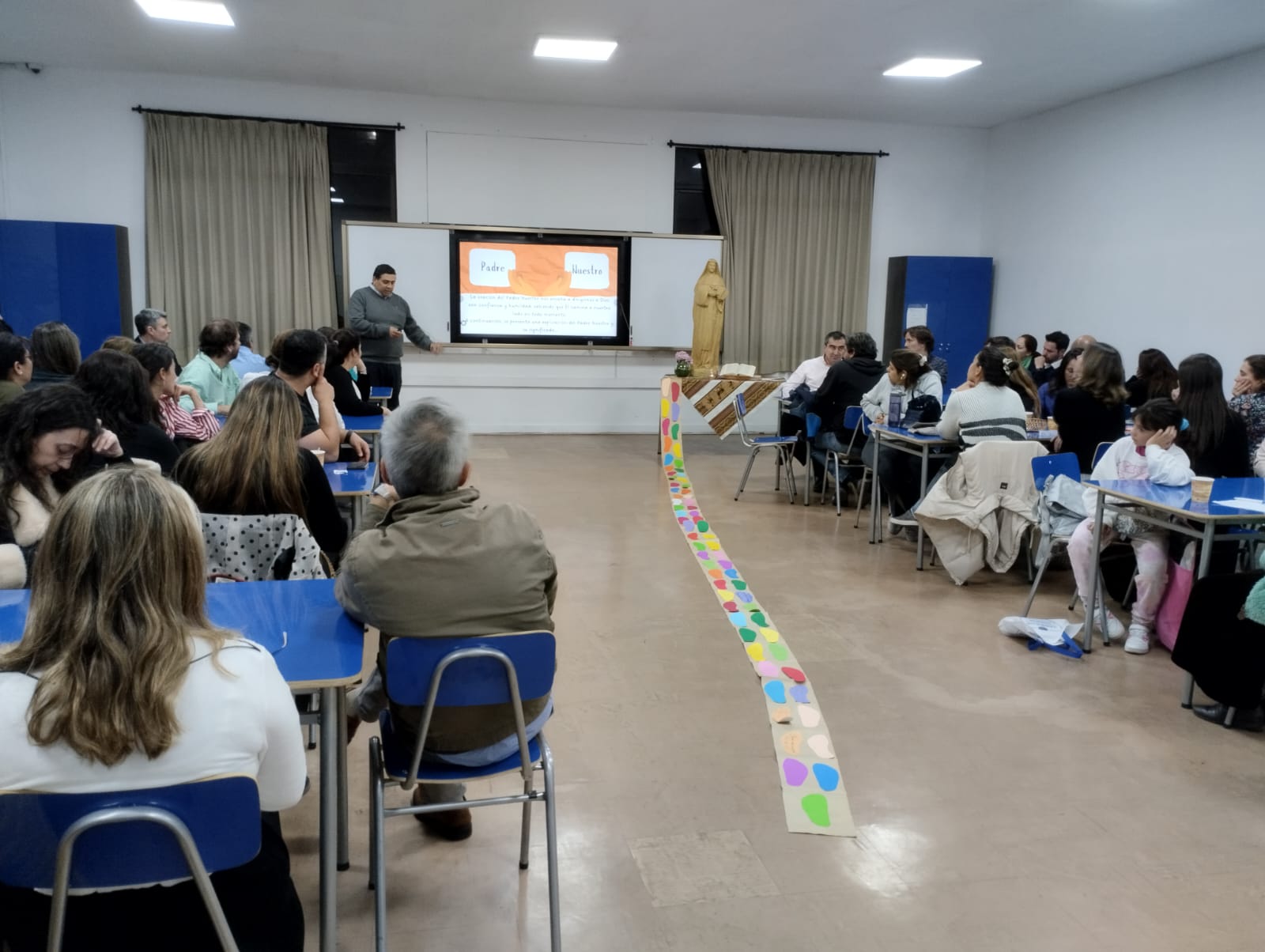 El jueves 25 de abril se llevó a cabo la primera catequesis familiar para padres y apoderados de 4° básico. Esta instancia invitó a reflexionar sobre el camino compartido y la experiencia de reconocer a Jesús a nuestro lado, así como a considerar la respuesta que le damos a través de la oración.