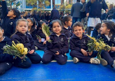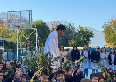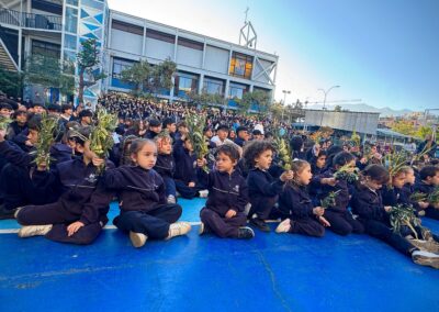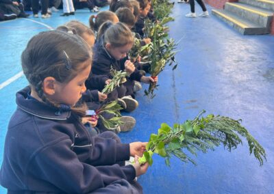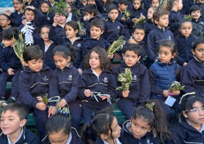 Cada curso participó también de un gesto simbólico, levantando sus ramas y compartiendo una palabra que expresaba cómo desean recibir a Jesús en esta Semana Santa: esperanza, amor, paz, servicio…