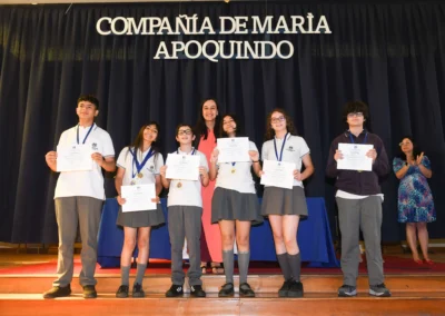 Con un ambiente de alegría, gratitud y sentido comunitario, el Colegio Compañía de María Apoquindo realizó la Ceremonia de Reconocimiento a los estudiantes de 1 básico a III° Medio, instancia destinada a valorar el esfuerzo, la perseverancia y el desarrollo integral de sus estudiantes durante el año escolar 2025
