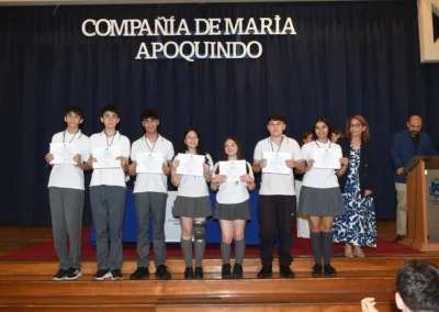 Las ceremonias se iniciaron con un momento de oración, poniendo el camino recorrido en manos de Dios y de María, y contó con la presencia del equipo directivo, educadores, familias y representantes del Centro de Padres y del Centro de Estudiantes. A lo largo de la jornada se entregaron distintos reconocimientos, entre ellos el Premio al Mejor Compañero, distinciones al esfuerzo y perseverancia, Premio Propuesta Evangelizadora, excelencia académica y el Premio Lestonnac, que destaca a quienes encarnan los valores propios de la Compañía de María y el legado de Santa Juana de Lestonnac.