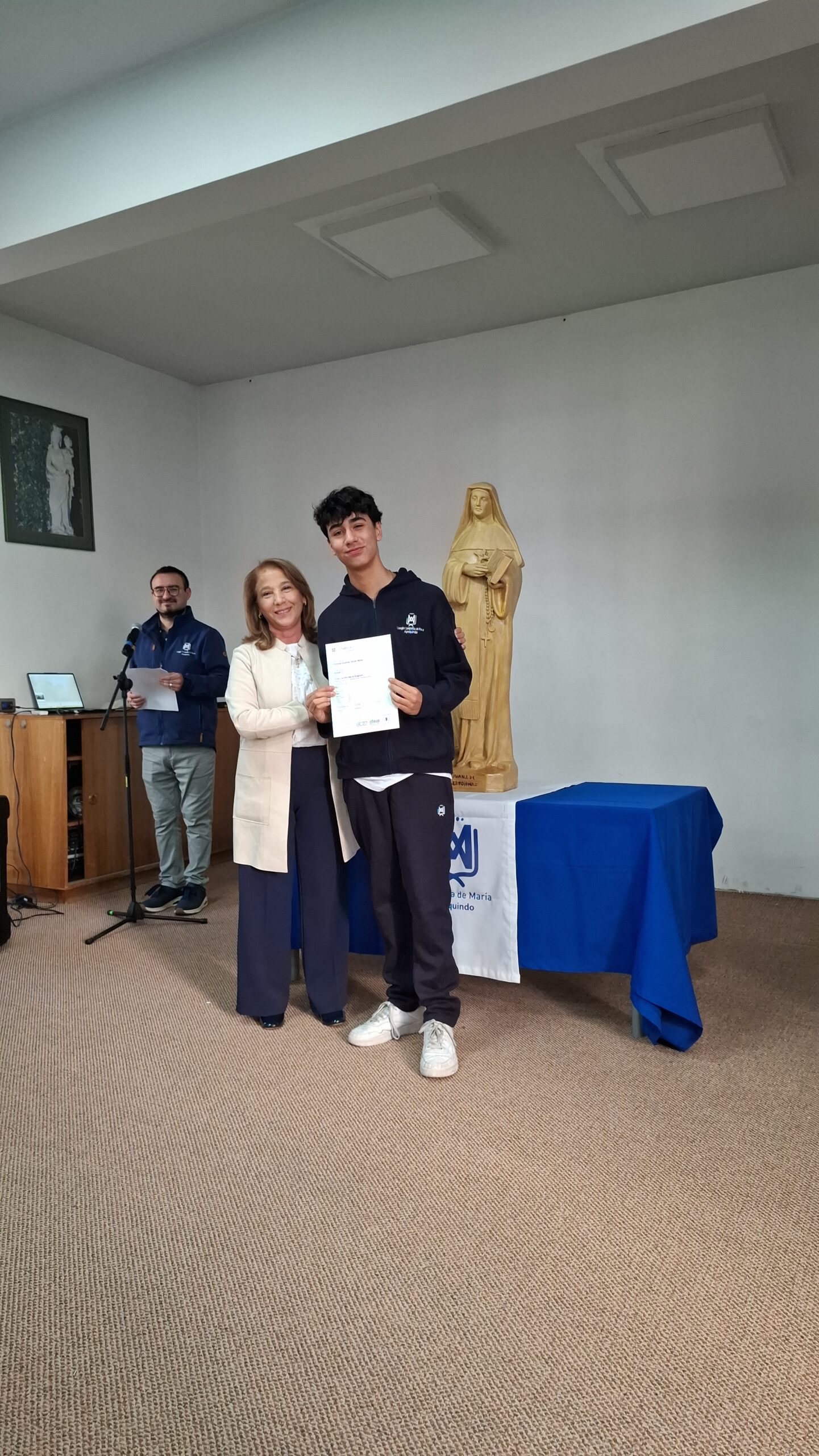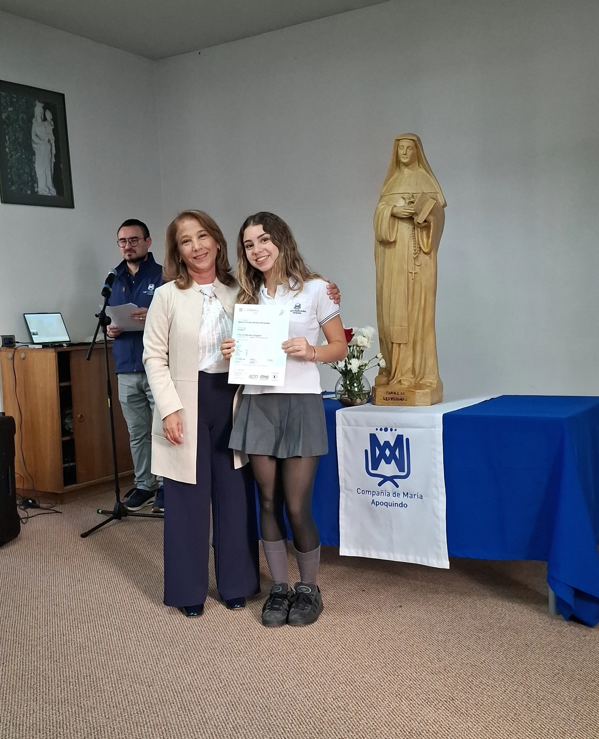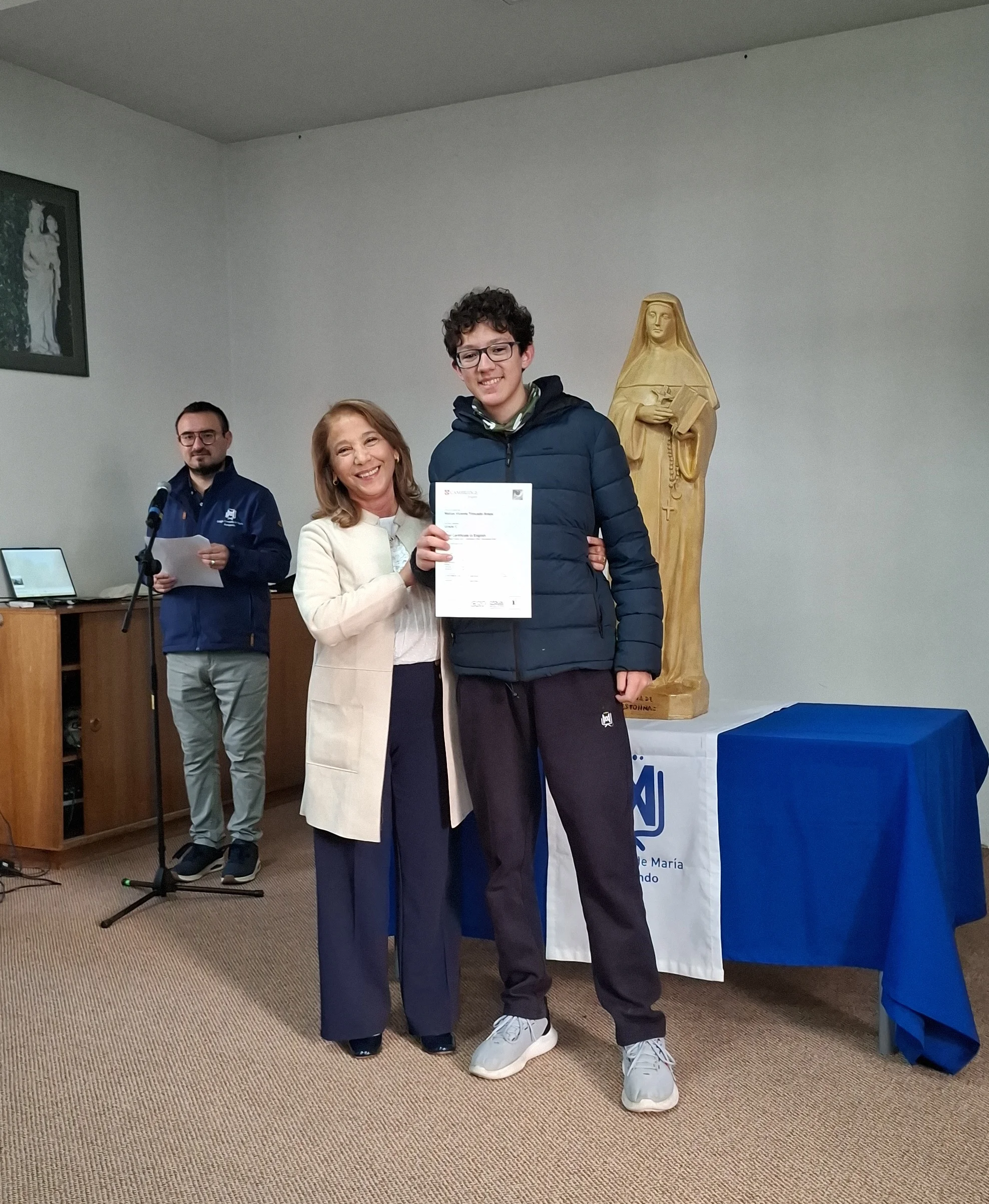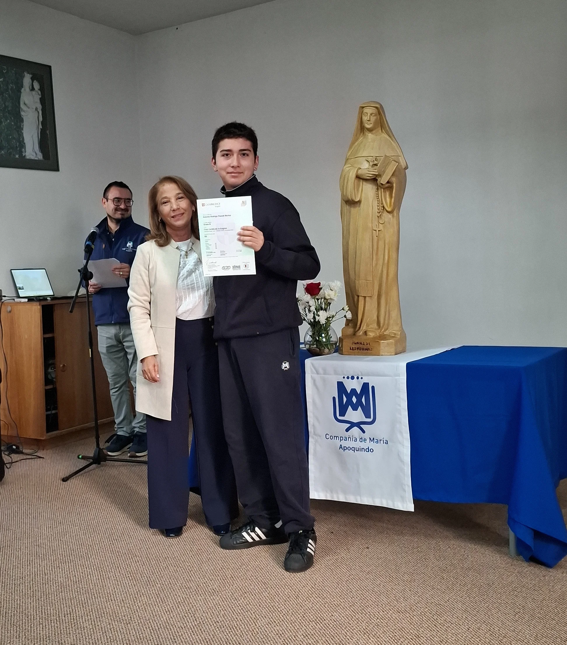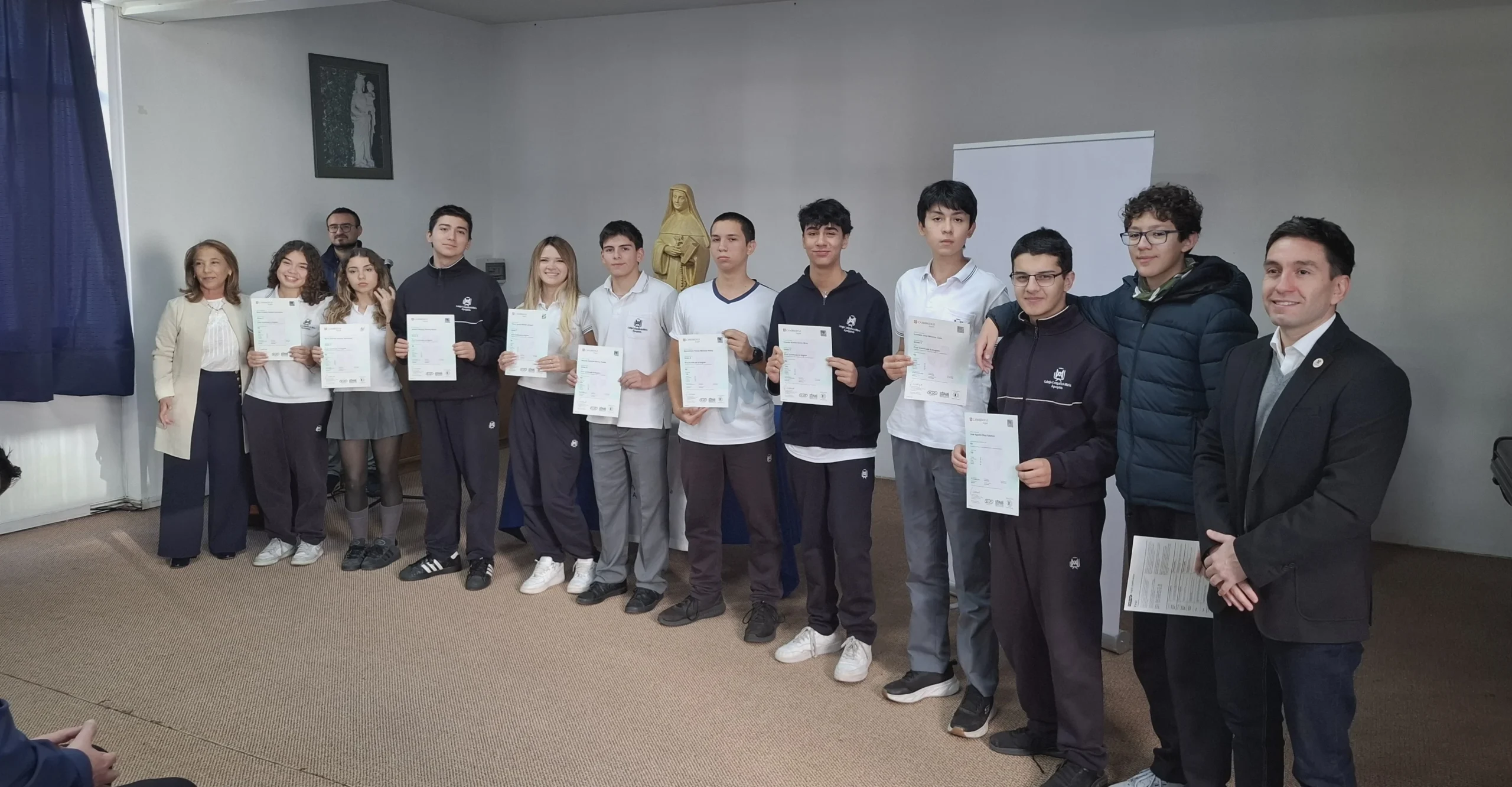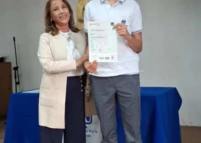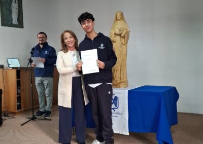 Nuestra directora, María Paulina Tello dio una cálida bienvenida a nuestros estudiantes certificados. Esta certificación en inglés tiene una relevancia global que le permitirá a nuestros y nuestras alumnas acceder a mejores oportunidades en el futuro académico y laboral. Cada uno de ellos recibió su certificado con aplausos y fotos memorables.