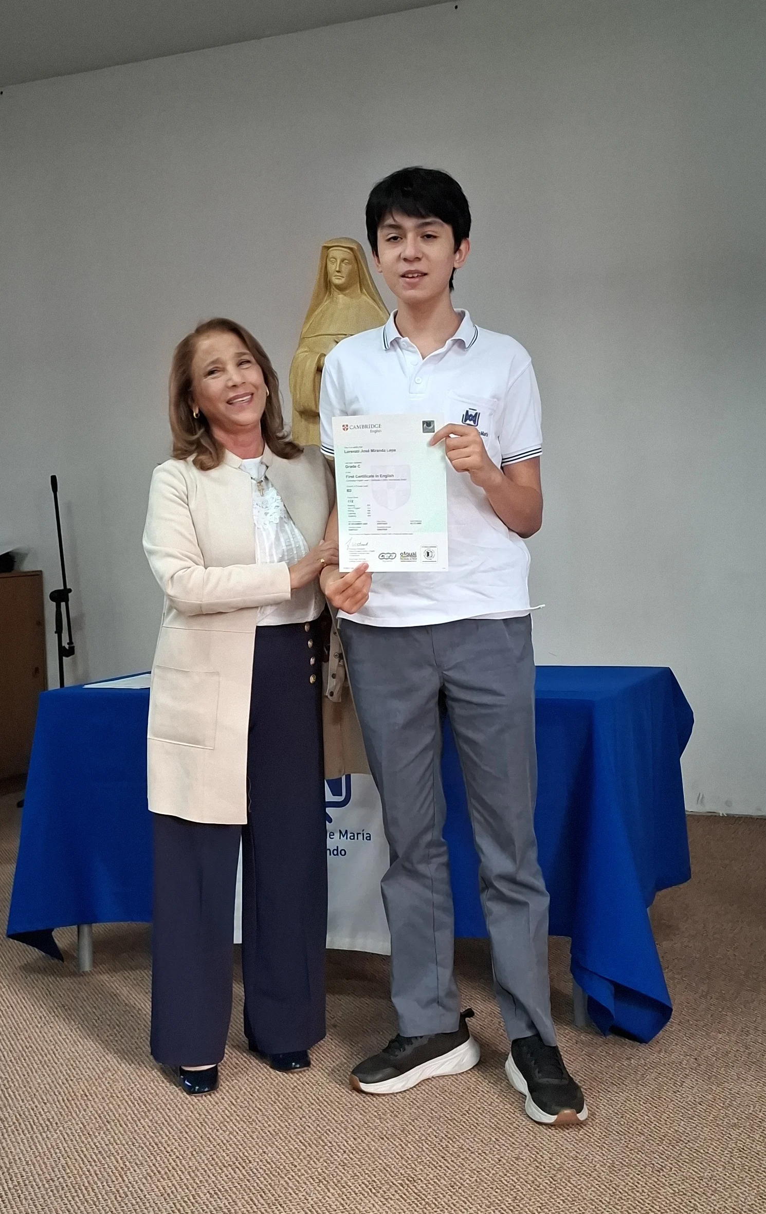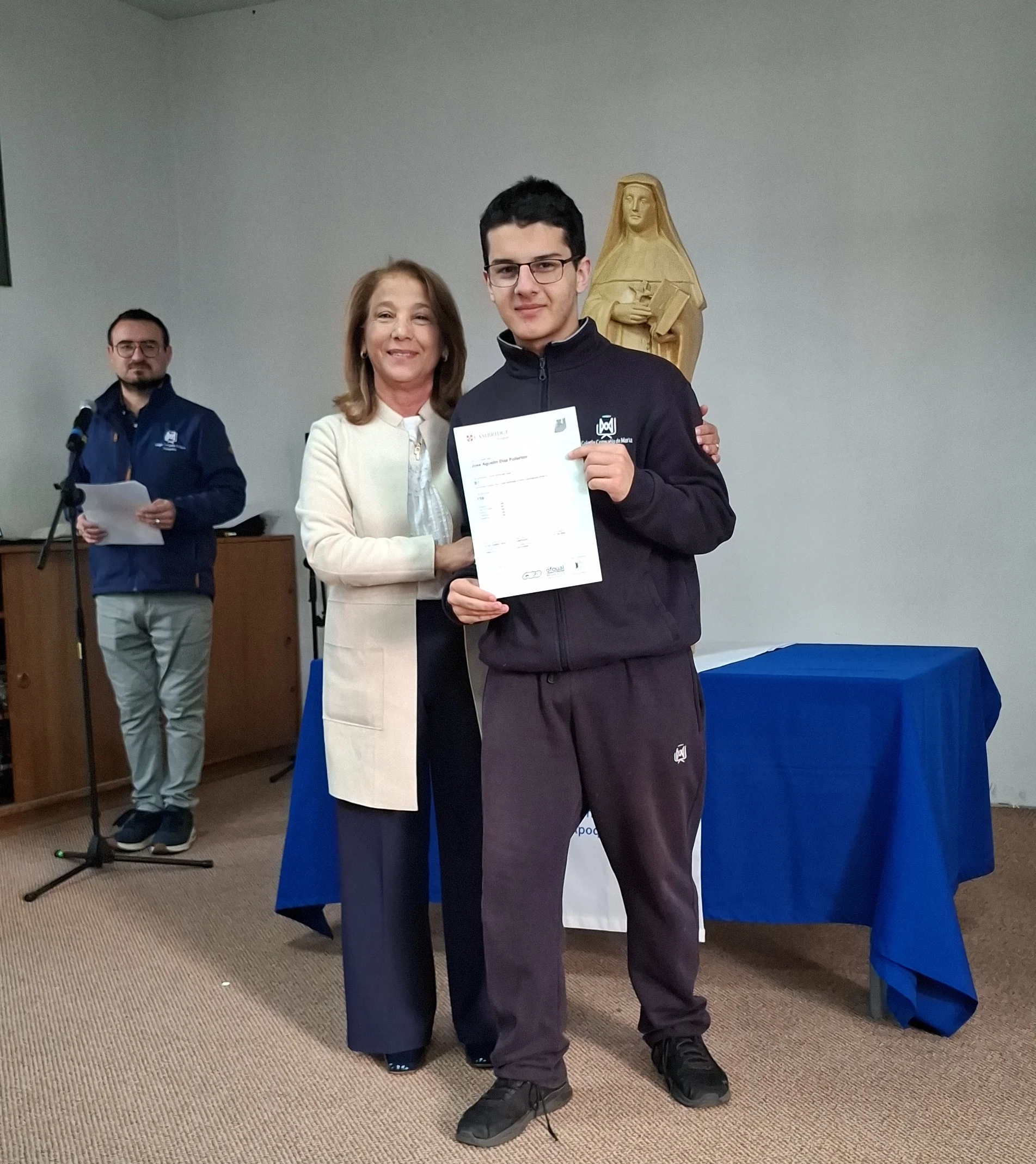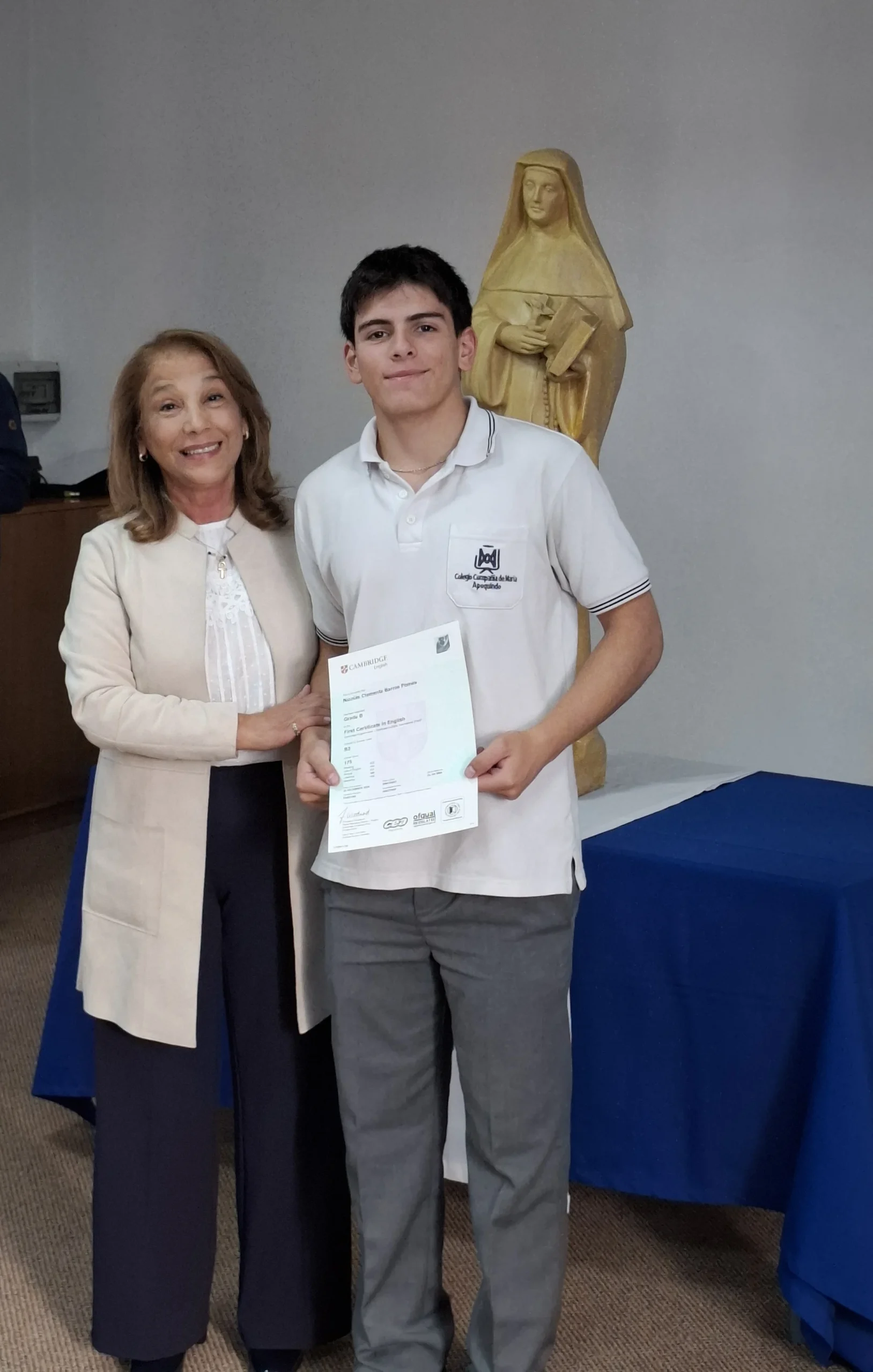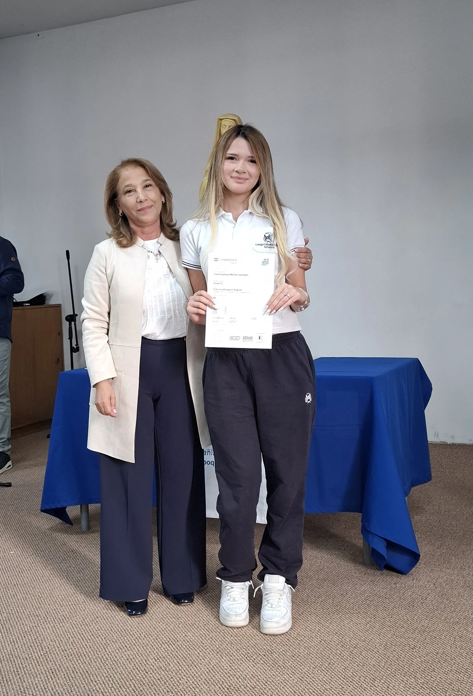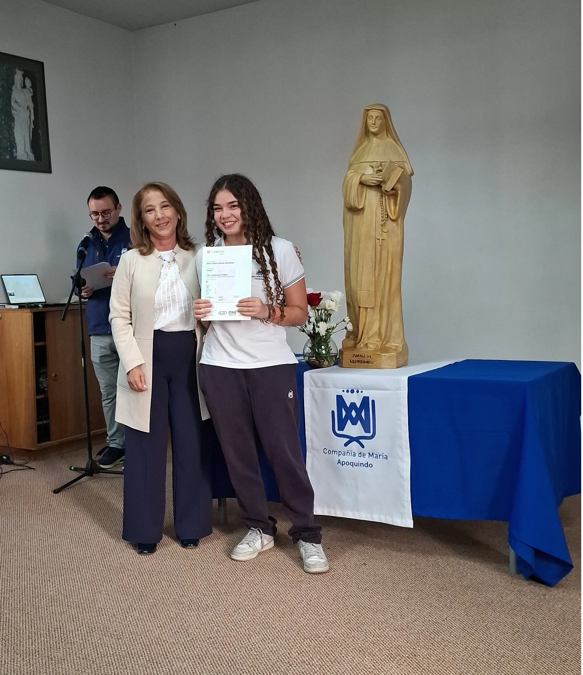 Nuestra directora, María Paulina Tello dio una cálida bienvenida a nuestros estudiantes certificados. Esta certificación en inglés tiene una relevancia global que le permitirá a nuestros y nuestras alumnas acceder a mejores oportunidades en el futuro académico y laboral. Cada uno de ellos recibió su certificado con aplausos y fotos memorables.